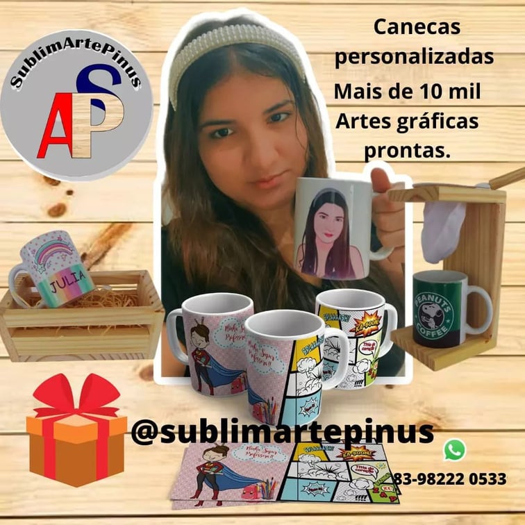 Canecas e Arte Pinus personalizadas para presentear ou ornamentar seu lar.